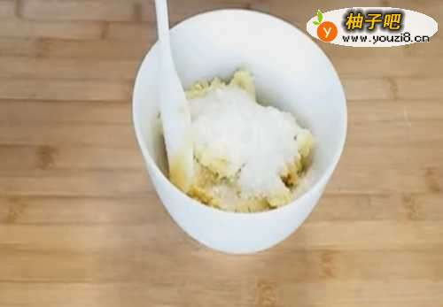 6趁热给绿豆沙里面拌上绵白糖,绵白糖的量根据各人口感来放,喜欢甜一些的人可以多放一些。也可以适当再放入一些蜂蜜,口感更好。
