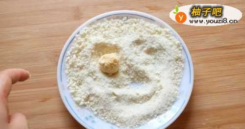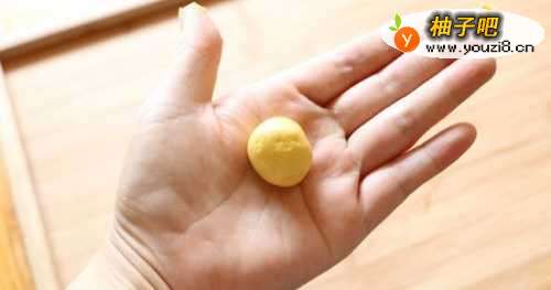 4取一小团面团,搓成圆形。