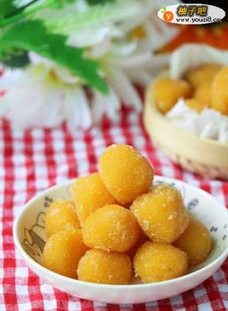 5裹上一层馒头糠,做成南瓜球。