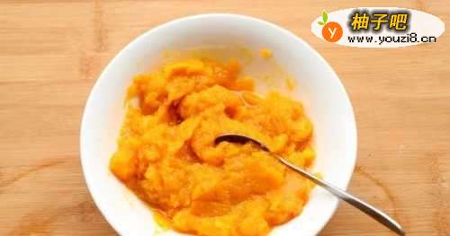 老南瓜去皮,切小块,蒸熟后,捣烂成泥,放凉。