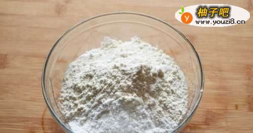 2取一个盆,将糯米粉和面粉充分混合。
