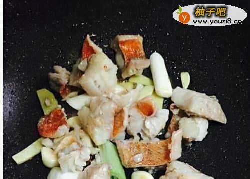 红鱼清洗干净,放少许黄酒(料酒也可以)腌10分钟,去腥。