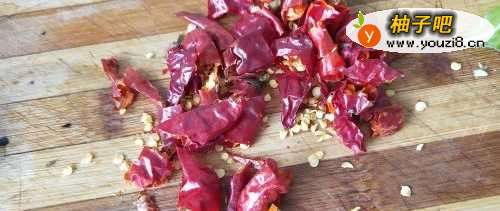 3如图,将干红椒和青红椒洗净后切好。