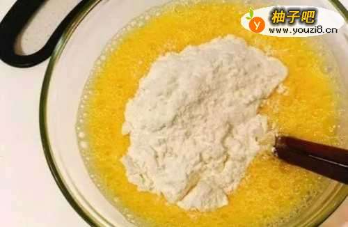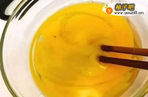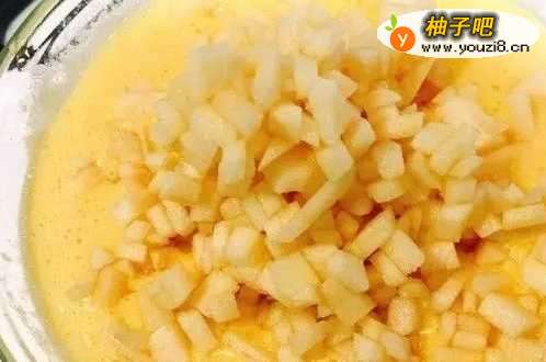 3苹果去皮切小丁倒入鸡蛋里面 。