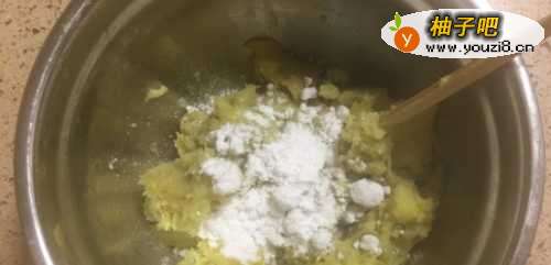 2将煮熟的红薯捞出,放入一个容器里,加入白糖,喜欢吃甜的朋友可以多放一些,趁热将红薯捣烂成泥,和白糖搅拌均匀。