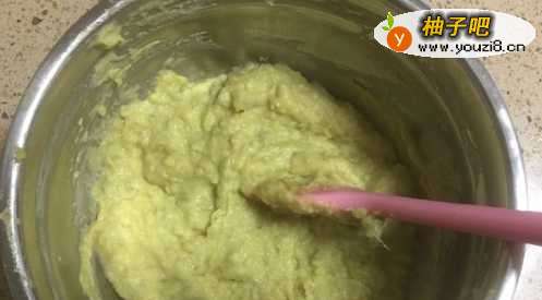 4加入鸡蛋以后,搅拌,直至搅拌均匀,成糊状为止。放在一边备用。