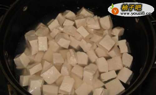 3锅里放水,烧开,放入豆腐煮10分钟