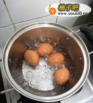 3鸡蛋煮熟去壳待用。