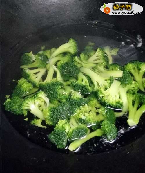3煮锅倒入适量清水,调入适量盐,植物油烧开,放入西兰花焯水;