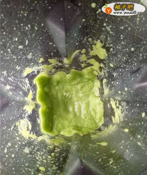 5将切掉绿色顶部的西兰花放入破壁料理机,倒入适量清水搅打成西兰花泥;
