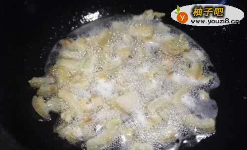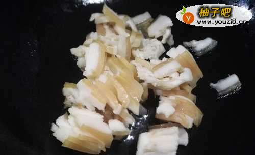 6烧热锅放入少许油,把控干水分的肥肉放入锅里。