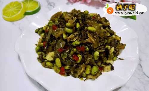 12雪菜毛豆炒肥肉就做好了,一道很美味的下饭菜。肥肉煎出油后配上雪菜毛豆一起炒,吃起来一点也不油腻。