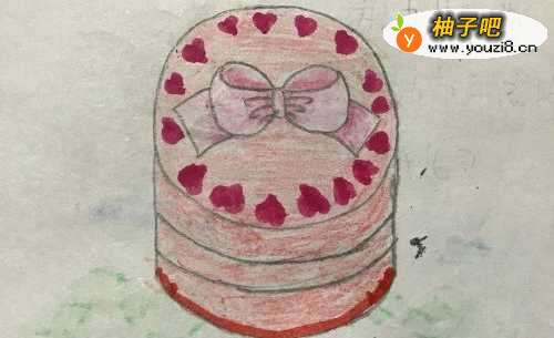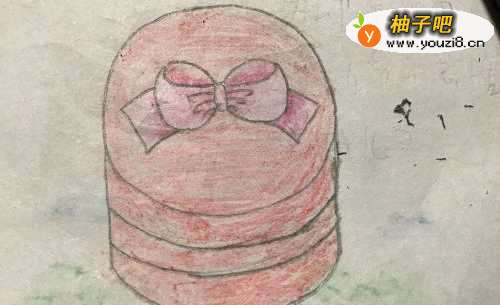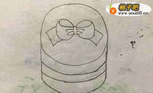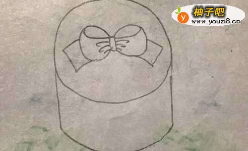 3现在我们将蝴蝶结饭盒画出来,一个圆柱体即可。