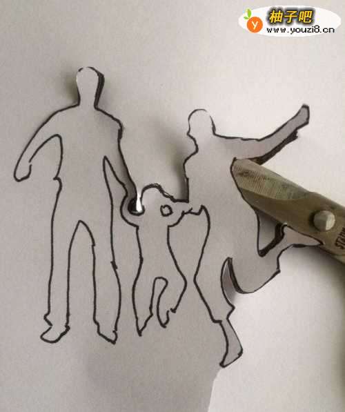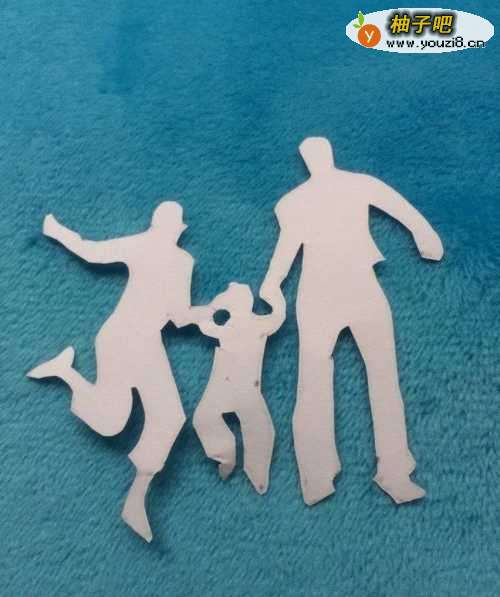 7然后翻过来,干净漂亮的一面朝上。这样“相亲相爱一家人”就剪纸完成了。