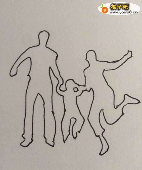 3然后画一个被爸爸牵着的活泼的小宝宝。