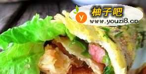 4.在别一面用刷子刷上调好的酱,放入油条或薄脆,卷起即可