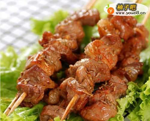1.羊腿肉切小块,洋葱切丝,加入羊肉中,加生抽3汤匙,孜然粉1茶匙,油1汤匙,盐1茶匙腌制半天,过夜也可。肉不可太瘦。肥瘦相间烤出来才好吃
