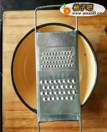 4将切丝器放置在碗的上面,并用手按住加以固定