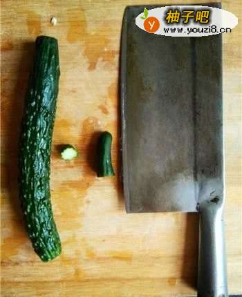 3用菜刀小心的将黄瓜的根蒂切除掉