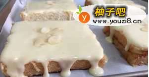 7借助刮刀涂抹芝士糊,厚厚地涂满整片吐司,不要留边(不然没涂到的部分会烤焦)芝士糊只需要涂一面!最后撒上杏仁片就可以开始烤了。