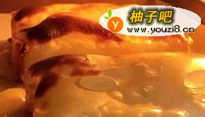 9注意观察,烤到金黄且出现较大的焦斑后马上出炉,再烤就不能形成奶皮状芝士层!!!整体口感也会变脆!(敲黑板)