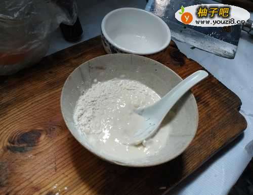 3然后准备面糊,面粉与淀粉1:1的比例,将第一步中剩下的蛋清倒入面糊,再加入适量的清水,搅拌均匀