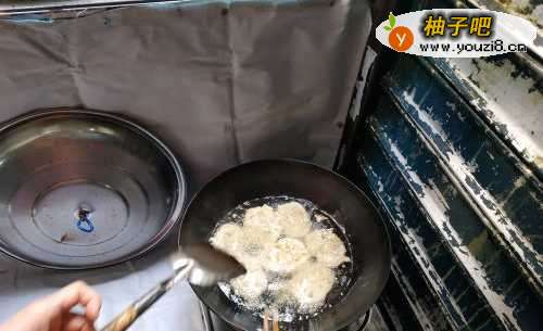 8然后在锅中倒入比平时炒菜多两倍的油,将裹好的藕夹放入其中油炸,可以边裹边炸,注意一定要全程小火