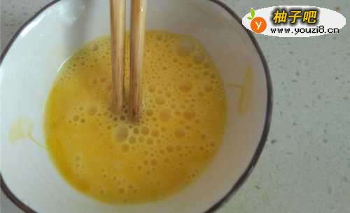 3鸡蛋打入碗中,搅拌成鸡蛋液。