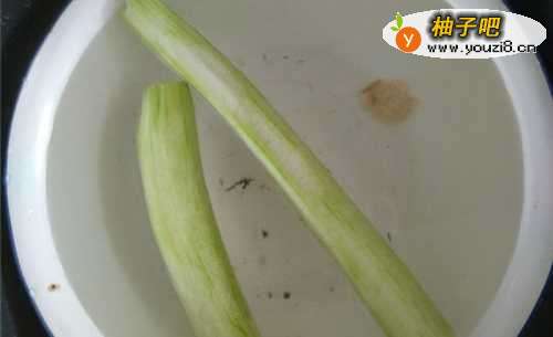 将丝瓜去皮以后用凉水泡开。