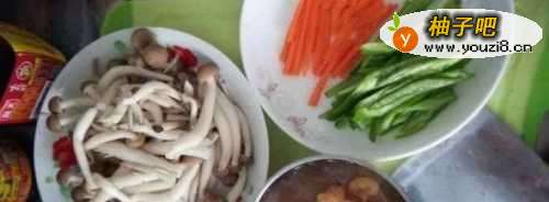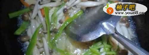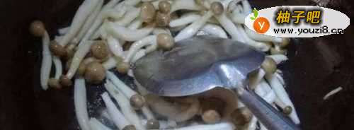 3锅内放油烧热先放入蟹味菇炒至变软