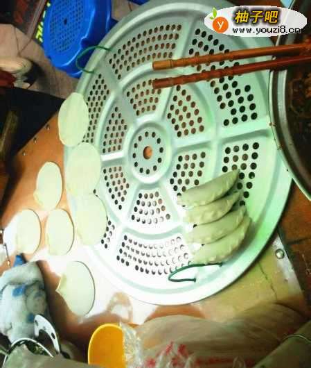 4第四步: 然后把炒好的菜(菜要切细且不能炒的太熟了因为要蒸嘛!放到捏好的粉皮里面封口.