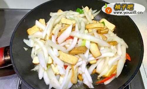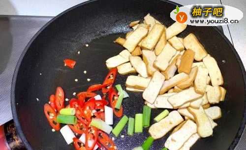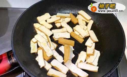 3香干入锅先炒过至表面有焦黄感