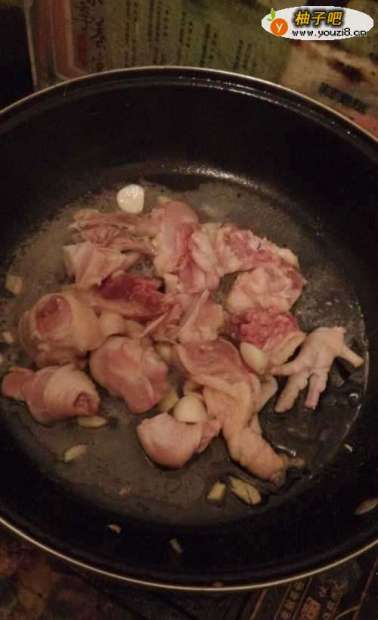 4第四步,油锅加热先把鸡肉爆炒一下,高温刺激鸡肉里边的蛋白质分解出来。4分熟的样子就可以盛出来了。