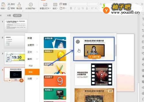5选择“视频模版”中【视频文本框】,点击【鼠标右键】,选择【更改视频】即可。