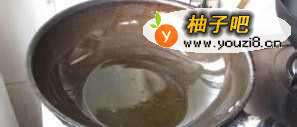 4锅中倒入适量油烧热冒烟浇在白菜心上。