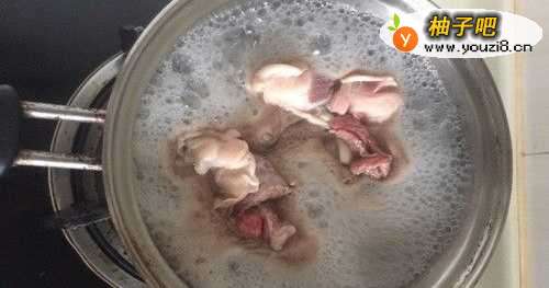 4起锅,放了知道清水,点火烧开,然后将羊腩过一下水后捞出。