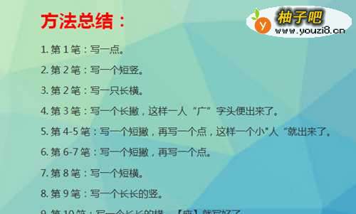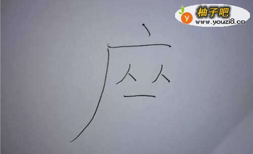 3第3笔:写一个长撇,这样一人“广”字头便出来了。