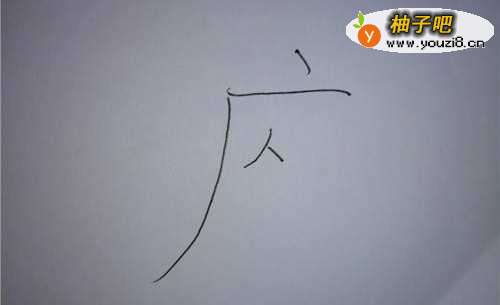 4第4-5笔:写一个短撇,再写一个点,这样一个小"人“就出来了。