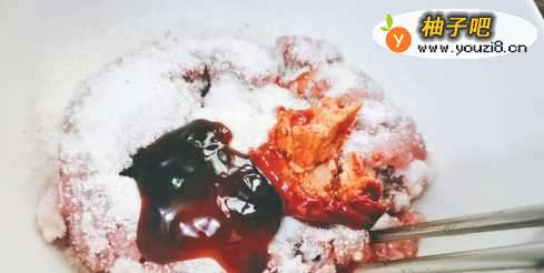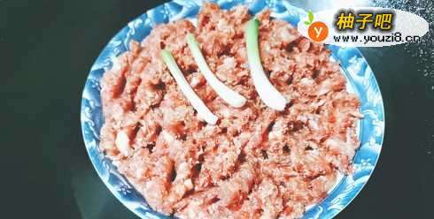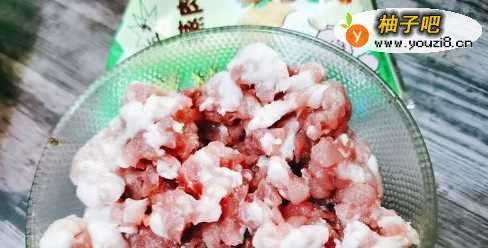 2把猪肉放入一个大碗里,加入所有配料。
