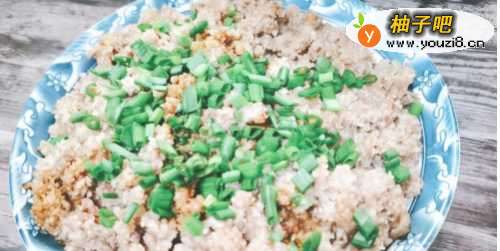 4烧半锅水,水煮沸腾后把搅拌好的猪肉放入锅隔水蒸8分钟左右。