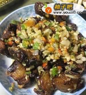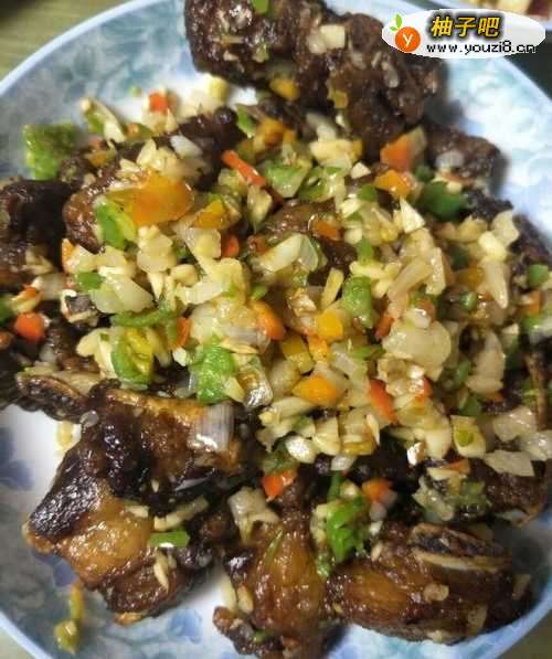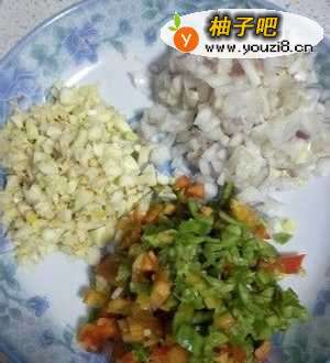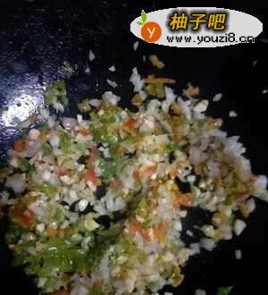 5另起锅少油,放入蒜末,洋葱末,辣椒末,大火翻炒出香味。放入沥完油的排骨,继续翻炒两分钟即可。