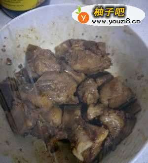 2控干净水的排骨放入1勺蚝油,1勺料酒,2勺生抽,1勺老抽,1勺盐,1勺鸡精,稍多的蒜末,1勺胡椒粉。搅拌均匀,封上保鲜膜,静置1小时。