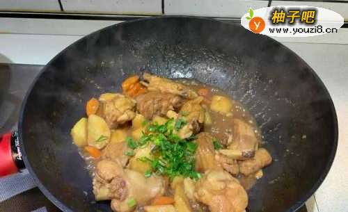 6最后开大火将锅中剩余汤汁收干撒上绿葱