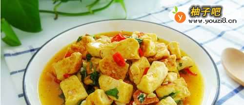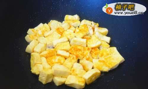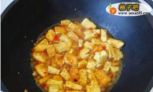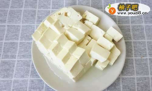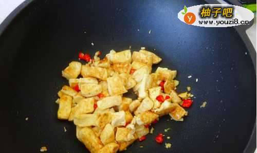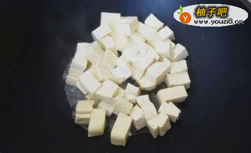 5把豆腐块煎至四面金黄的状态,出锅备用
