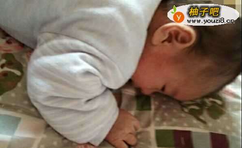 6让孩子侧卧在床上,宝爸或者宝妈用手轻轻的推动宝宝的屁股,让宝宝完成从侧卧到趴的动作。在推动宝宝的时候,要掌握着力度。