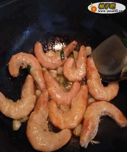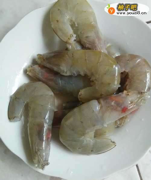 把鲜虾放在清水中,用剪刀剪去虾刺、尾巴和虾线。