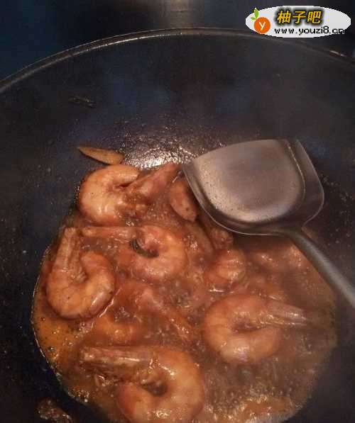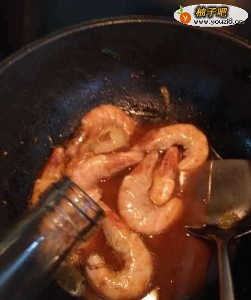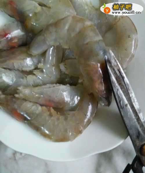 6因为虾太大,怕不入味,所以用剪刀把虾背部的壳剪开。