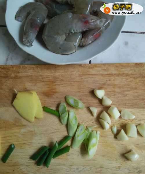 3准备葱、姜、蒜,葱和姜切成片,蒜从中间切开。