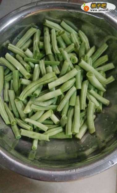 2无丝豆摘成小段后洗干净。