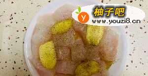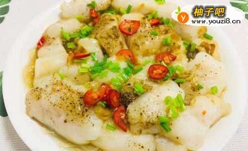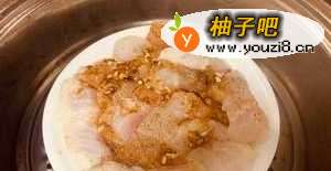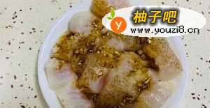3把龙利鱼切成块,块不要太小,要不蒸完后就会缩成一小团一小团的。盘子中放入料酒、生姜片、黑胡椒,腌制15分钟。然后放入锅中蒸三分钟